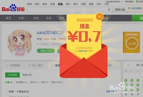 2、多勞多得,第日發表的經驗多,獲得獎勵的機會也多,每日發布第一篇、第三篇、第五篇經驗都會有相應的紅包,且越到后面,獎勵越大,從4毛到7毛到一元五毛不等;