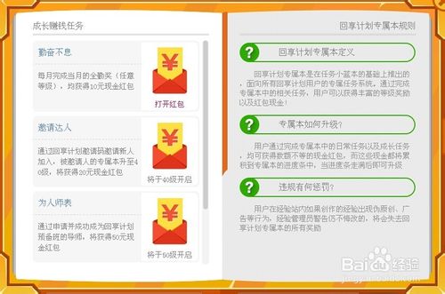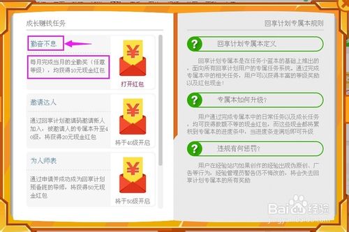 加入百度經驗回享計劃,成為簽約作者后,發布的經驗就會有回享提成,同時,完成回享專屬本每天的任務,還會收到系統發給的紅包獎勵。知識在于積累,如果我們做任何事情都能靜下心來,持之以恒,一步一個腳印,相信無論干什么都會獲得成功,在百度經驗要收獲成功,也是一樣,不僅要付出才能獲得回報,還必須要求自己不斷提煉生活經驗、提高專業技能,這樣分享出去的知識才能真正幫到別人,從而收到相應的回饋。如果將自己的目標定位在提升自我,幫助他人,不以賺錢為目的,相信我們簽約作者成長的速度和空間會更大。