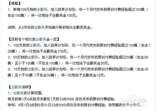 7、除此以外,如果寫的經驗量多質優,每月還會額外獲得100元、50元、15元不等的全勤獎勵;