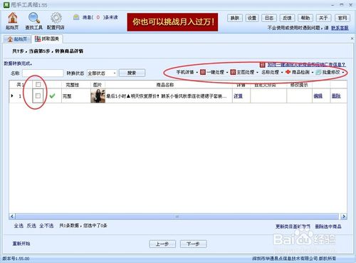 6、可進(jìn)行以下操作:手機(jī)詳情一鍵制作、一鍵處理各種商品信息、主圖的處理、名稱的處理、檢測(cè)商品、批量修改等。