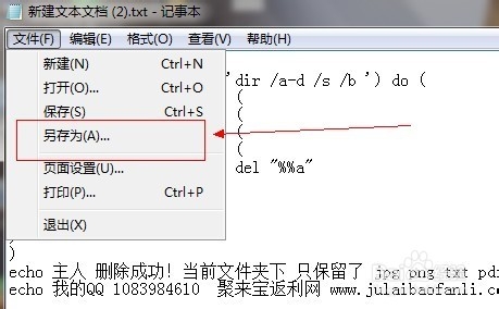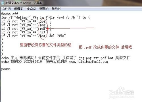 echo 主人 刪除成功!當(dāng)前文件夾下 只保留了 jpg png txt pdf bat 類型文件,