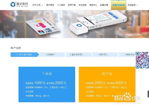 2、進來后,如圖界面,根據個人需要,點擊申請"個體版"或者"商戶版",個體版額度少,商戶版額度高一些,但申請需要營業執照,個體版只需要身份證和銀行卡就行,點擊進入申請