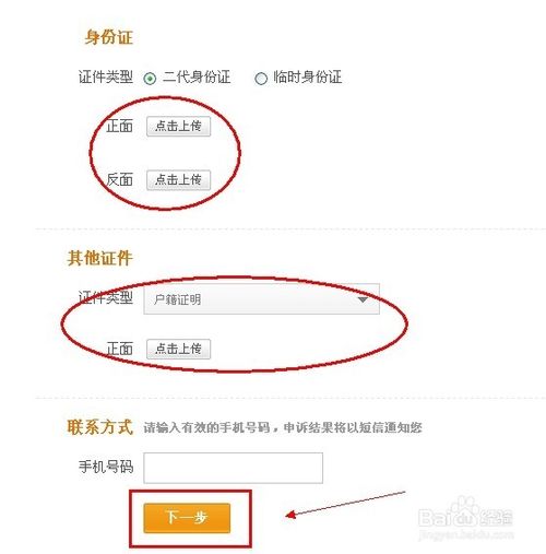 第二步的時候需要注意了,你首先要上傳自己的身份證正反面,其他證件是可以選擇的,可以選擇“戶口本”、“戶籍信息”、“市民卡”等等,可選擇的類型有7 8種。大家上傳完之后點(diǎn)擊“下一步”