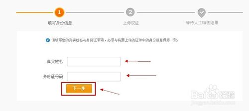 填入自己的身份證號以及自己的真實(shí)姓名。點(diǎn)擊下一步
