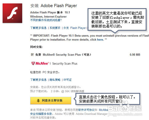 1、提示安裝adobe flashplayer,請注意,在安裝flashplayer之前需要關閉所有網頁窗口