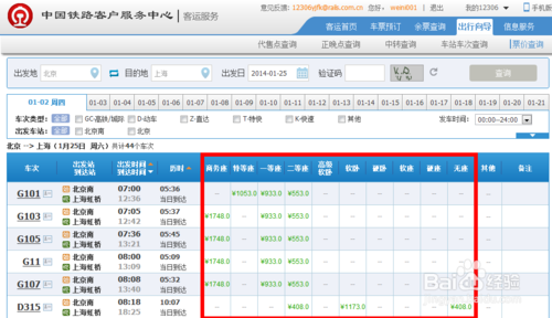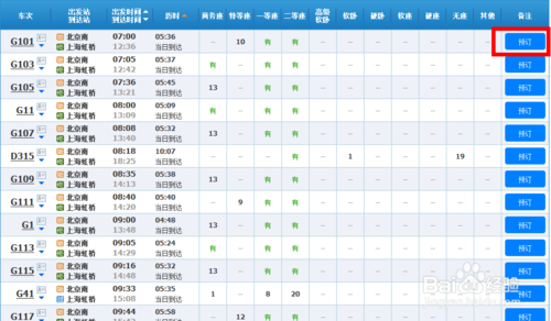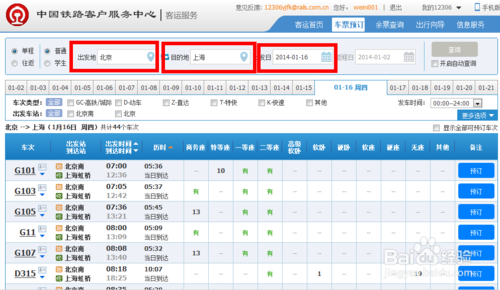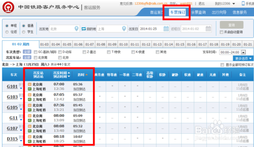 3、頁面進入了車票的購票狀態,這個時候,我們選擇好出發地,目的地,以及出行的日期等,點擊一下查詢,就會出現,符合你要求的所有的車次。