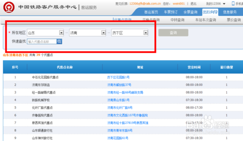 這個點擊一下首頁上的代售點,進入后,并按查詢,就可以看到其代售點的售票的地址了,你也可以選擇去這里進行購票。
