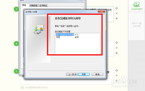 5、返回證書導入向導,點擊下一步。跳轉到正在完成證書導入向導后,點擊完成。若彈出警告,則點擊是。