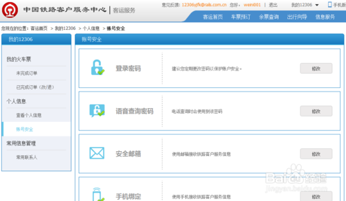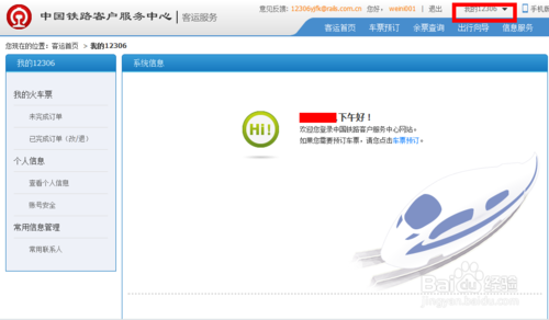 登陸了網站后,記得,點擊一下右側的我的12306,進入后,就可以在自己的賬號里看到訂單的情況,以及修改密碼的情況等。