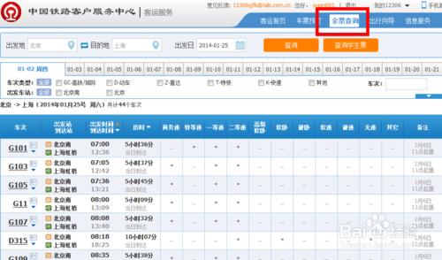 在首頁上,點擊余票,輸入你所需要的列車的班次和出發的時間,點擊查詢,就可以看到余票的顯示了。