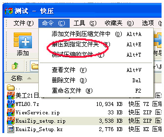 或從"命令菜單"選擇"解壓到指定文件夾"。