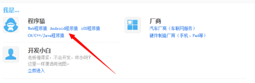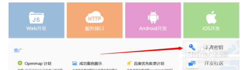 3、進官網會顯示一個提示,選擇Android程序員可以進去了解下百度地圖,你如果和了解就可以直接關了。然后找到下面的申請密鑰的按鈕點進去。