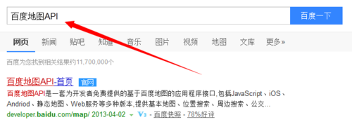2、有了百度帳號就可以去網站申請key了,百度“百度地圖API“,點開第一條信息就可以進百度地圖API的官網。