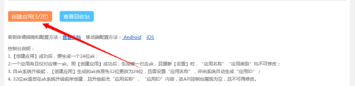 4、在這里因為是展示Android百度API的應用,所以點擊創建應用,在窗口中選擇for mobile,應用名稱可以隨便設置。