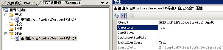 這里 Arguments 里輸入 /u  表示卸載命令相當于 InstallUtil.exe /u 服務路徑  , 到這里 ,我們的安裝程序就已經制作好了,生成安裝程序項目,將會生成 setup.exe 和 setup.msi 安裝文件,拷貝到客戶端,點擊setup.exe 就像安裝QQ一樣安裝我們的服務,實際上比QQ好多了,QQ還有廣告,我們可是純綠色的!