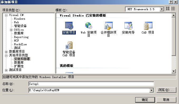 安裝程序制作 :解決方案(右擊)——> 增加 ——> 新建項目 ——> 項目類型選擇安裝和部署 ——>  模板選擇安裝項目   如圖 :