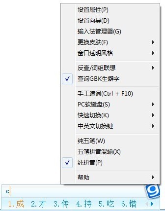 第二步:右鍵單擊光速輸入法主界面,出現的菜單欄最后三項可以選擇五筆輸入模式,如果需要詳細設置請選擇頂部“設置屬性”,在進去的界面根據個人喜好進行五筆輸入的習慣設置。