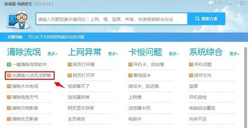 進入新毒霸電腦醫(yī)生界面點擊【光速輸入法無法卸載】