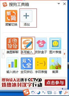 1、先打開“工具”,找到手寫輸入,然后添加到上述框框的列表。