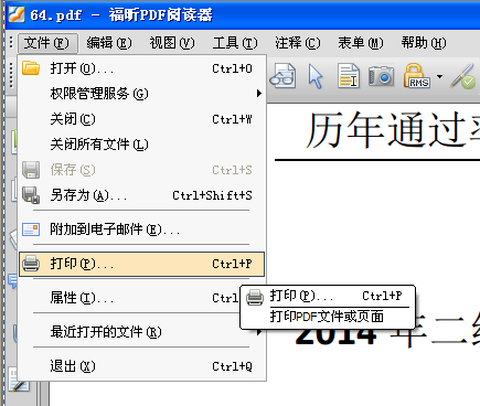 1、看看原文件,我是用福昕閱讀器打開(kāi)的,里面的打印選項(xiàng)是灰色不可選。