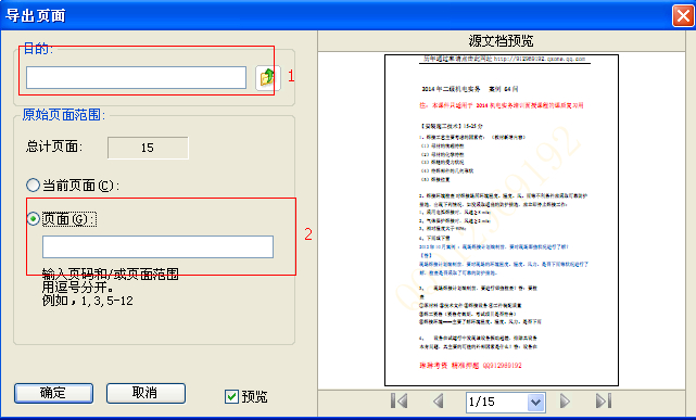3、在1處填導(dǎo)出的文件名,2處填導(dǎo)出頁(yè)數(shù),如果全部導(dǎo)出,有10頁(yè)的填“1-10”。