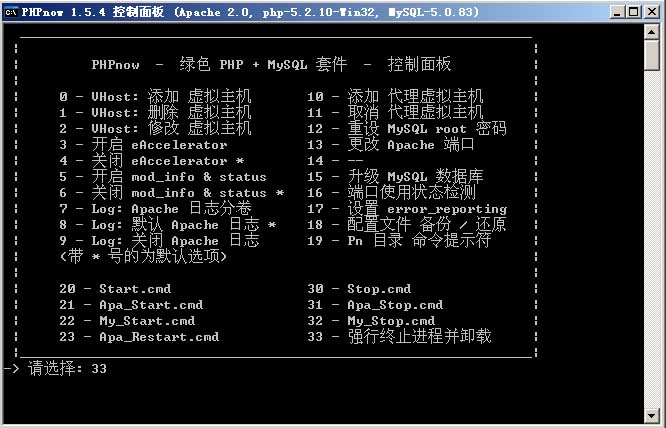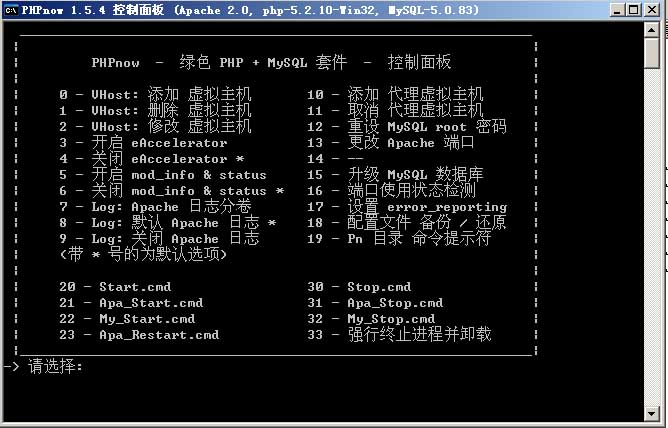 此時(shí)計(jì)算機(jī)會(huì)彈出一個(gè)DOS對(duì)話框,這個(gè)就是PHPnow的控制面板對(duì)話框。