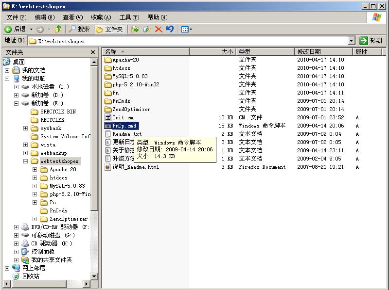 用戶可以找到這個(gè)文件夾后打開。在前文中,筆者是把這個(gè)軟件安裝在“E:/webtestshopex”目錄下的。