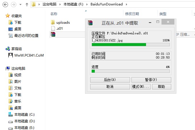 三、接下來我們會看到,壓縮解壓軟件會自動提取其他分卷文件,如下圖所示: