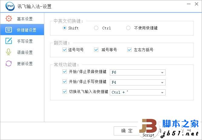 常規功能鍵:可以設置錄音、手寫、輸入法切換使用的快捷鍵。默認“開始/停止錄音快捷鍵”開啟;“開始/停止手寫快捷鍵”開啟;切換訊飛輸入法快捷鍵開啟為ctrl+’;