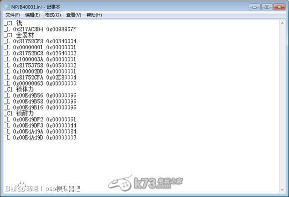 可以用記事本打開進入編輯 在這里面可以輸入金手指的作弊碼可以在這個鏈接里面找到