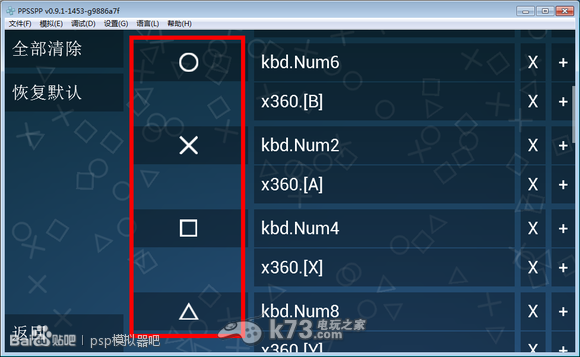 紅框里面的就是psp按鍵一般來說 psp游戲只要把上面所有鍵位都設置好了游戲的操作就沒有問題了