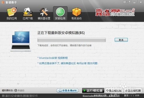 2、待檢測通過開始在線安裝,等待安裝完成,彈出模擬器安裝提示,開始下一步等待安裝完成。