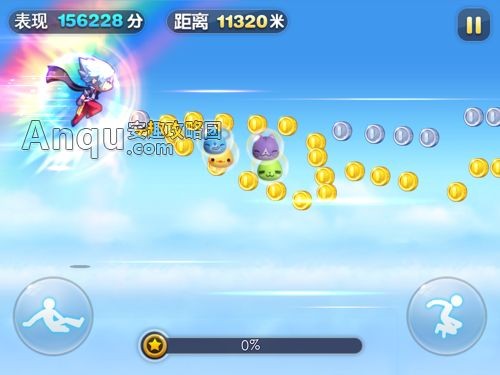 4、正常游戲開始,在玩的過程中當吃到第一個飛行的時候,迅速點暫停,此方法不用買道具,但是手的速度一定要快。