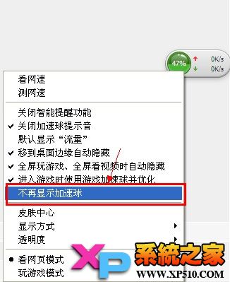 它一直出現(xiàn)著,有時(shí)候覺(jué)得挺麻煩。如果您想去掉它,可以在它上面單擊鼠標(biāo)右鍵,然后從快捷菜單中選擇“不再顯示加速球”即可。