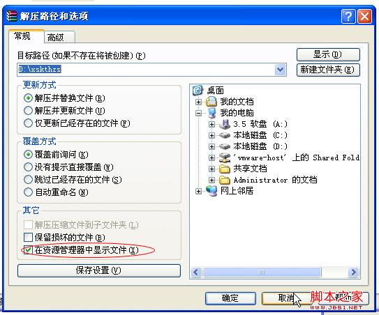 如果希望每次解壓后,WinRAR都能自動打開解壓目錄,在勾選了“在資源管理器中顯示文件”之后,再點(diǎn)擊“保存設(shè)置”按鈕,保存上述設(shè)置即可。以后WinRAR完成解壓任務(wù)后就可以直接打開解壓目錄了。