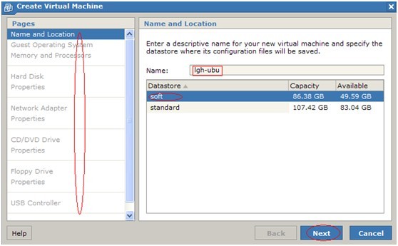在Name處輸入自己定義好的虛擬主機名稱:這里輸入lgh-ubu,Datastore默認會選擇前面新建的soft,圖中左邊窗口是,安裝向導進度狀態框。