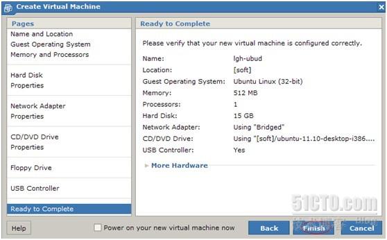 根據,宿主機器的內存容量定本虛擬機大小,這里系統默認給512M給ubu,CPU個數為1。宿主機器CPU是E5400,普通雙核,不支持超線程,內存為2G,所以在這里,虛擬機只能給這么多了,如果想以后它運行得快點,請根據實際情況,適當多給些資源給虛擬機。