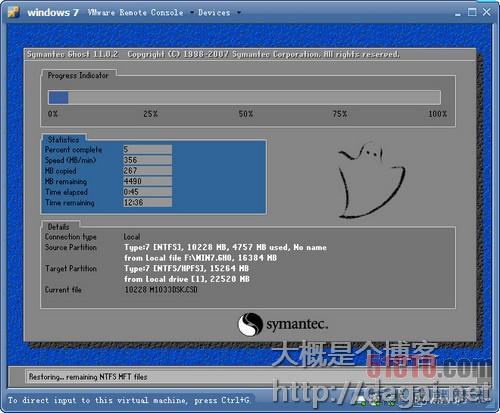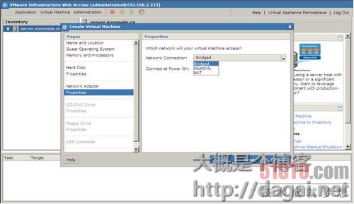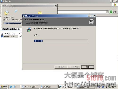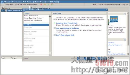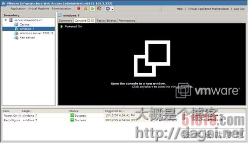 第三個任務,任何一個對VMware server的操作都是一個任務,都會在這里顯示進度,進度100%就完成了。