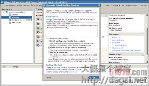 Desktop Shortcut to XXXXX創建一個桌面快捷方式,點了之后桌面就出現了一個鏈接到該虛擬機的圖標了,點擊那個圖標試試看