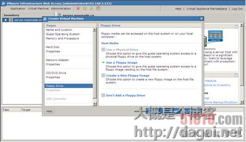 這步添加軟驅,呵呵,軟驅現在使用的可少了,所以第一個使用物理軟驅估計沒法用了,第二個是使用一個軟盤映像,跟選擇光盤映像類似,第三個是創建一個軟盤映像,跟創建虛擬硬盤類似,不多說了,一般我們選擇最后一個選項,不添加軟驅設備,有時候做實驗要用到軟驅,根據需要是否添加吧。