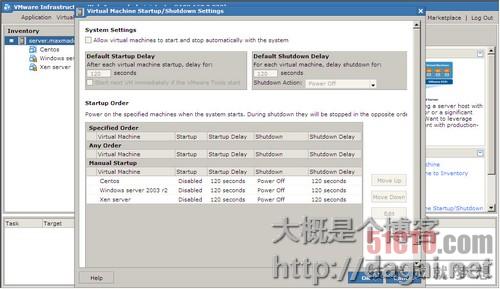 下面就是每個虛擬機啟動和關閉(或休眠)的間隔時間,還可以在下面的startup order里面改變各虛擬機啟動的順序。