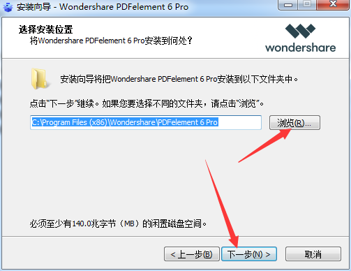 4、選擇安裝位置,軟件默認(rèn)安裝在C盤,C盤空間充足的伙伴們可以默認(rèn)安裝位置,反之則點(diǎn)擊后面的“瀏覽”選擇其它盤符進(jìn)行安裝,如:D盤,確定好安裝位置后,繼續(xù)點(diǎn)擊“下一步”