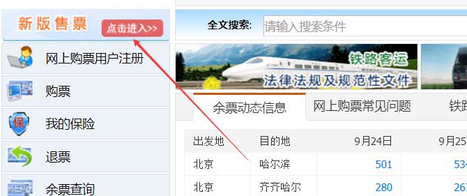 2、打開12306官方首頁后,點(diǎn)擊右側(cè)的新版售票,如下圖所示。