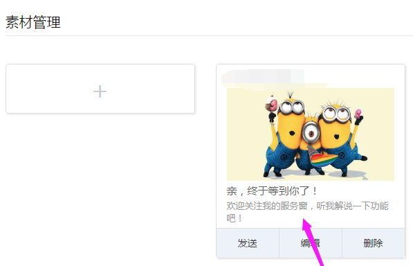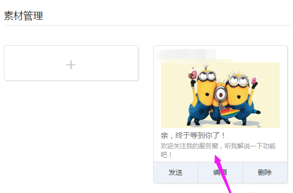 7、保存后,再素材管理頁面就可以看到剛剛添加的這個單圖文素材。