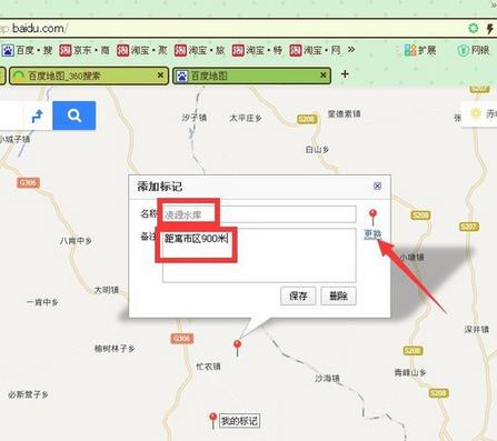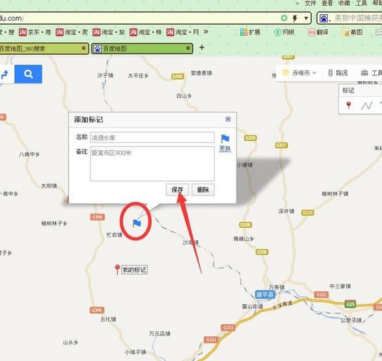 5、填寫完全部的標記信息后,只要點擊一下圖上的“保存”按鈕,你所標記的信息就會在地圖上顯示出來了!