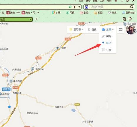 2、接著,就會彈出一個小菜單,這里我們找到“標記”選項,點擊一下,就能開啟標注地圖位置的功能了!