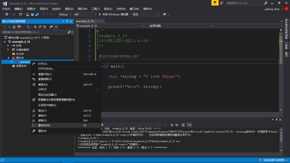 解決方案重命名:鼠標右擊解決方案,選擇"重命名"。