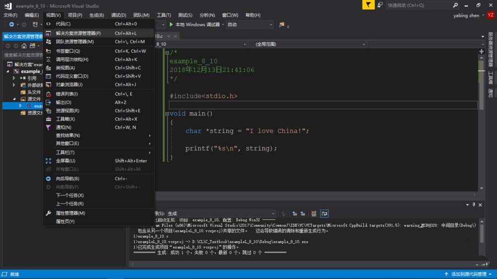2、在菜單欄中點擊"視圖",選擇"解決方案資源管理器"選項。