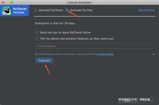 如果你是剛下載的pycharm,則需要點擊激活窗口的“Evaluate for free”免費試用,然后再創建一個空項目,這樣就可以進入到pycharm的工作頁面