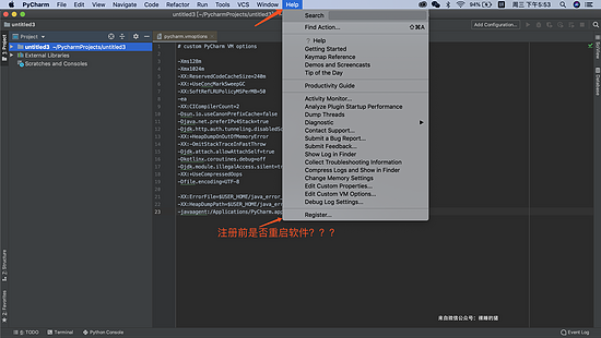 1)修改完配置文件之后重啟pycharm,點擊菜單欄中的 “Help” -> “Register …”